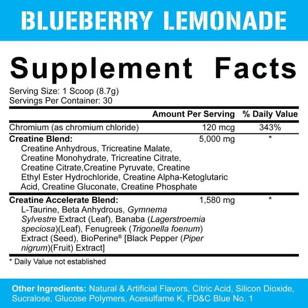 | Creatine Accelerate Blend: | 1580 mg | * |
