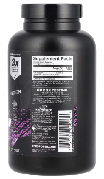 Kre-Alkalyn EFX utilizeaza un ingredient patentat care impiedica transformarea creatinei in creatinina inainte ca aceasta sa atinga tesuturile musculare. Kre-alkalyn va ofera cele mai bune rezultate ale creatinei monohidrat la doze mai mici.
