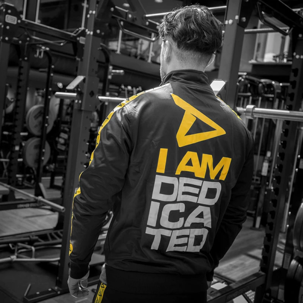 - Logo-ul mare ‘I Am Dedicated’ imprimat pe spate